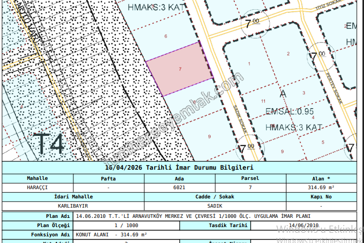 ARNAVUTKÖY HARAÇÇIDA SATILIK 315 M2 ARSA